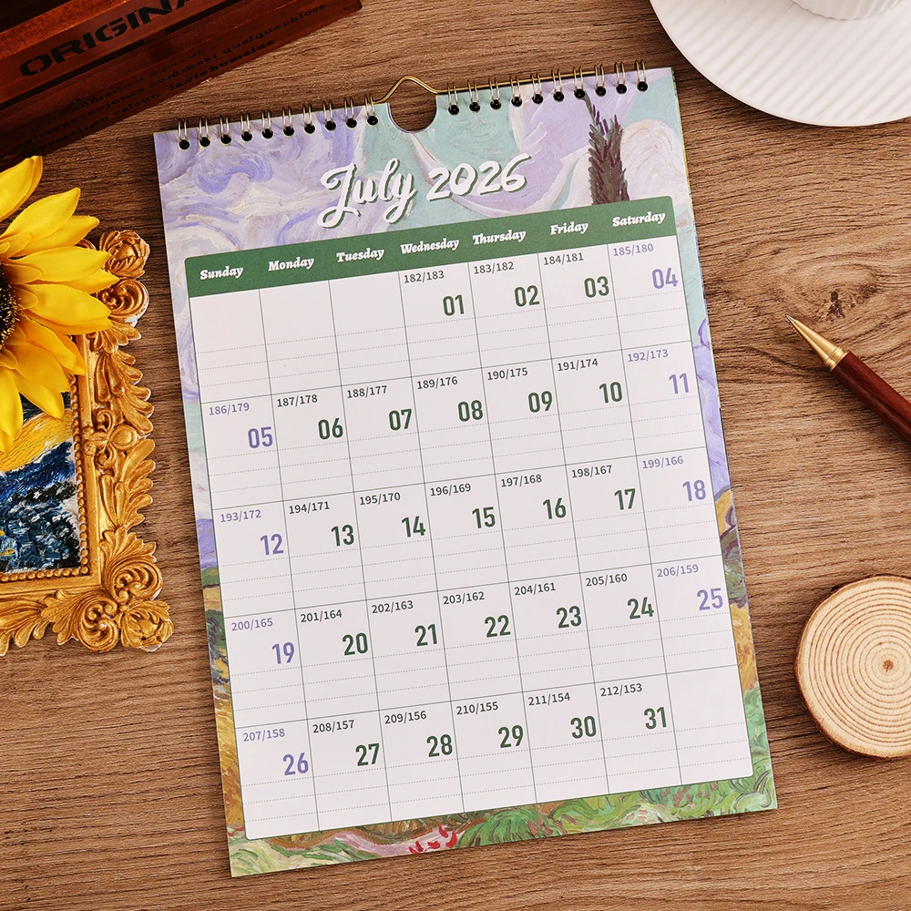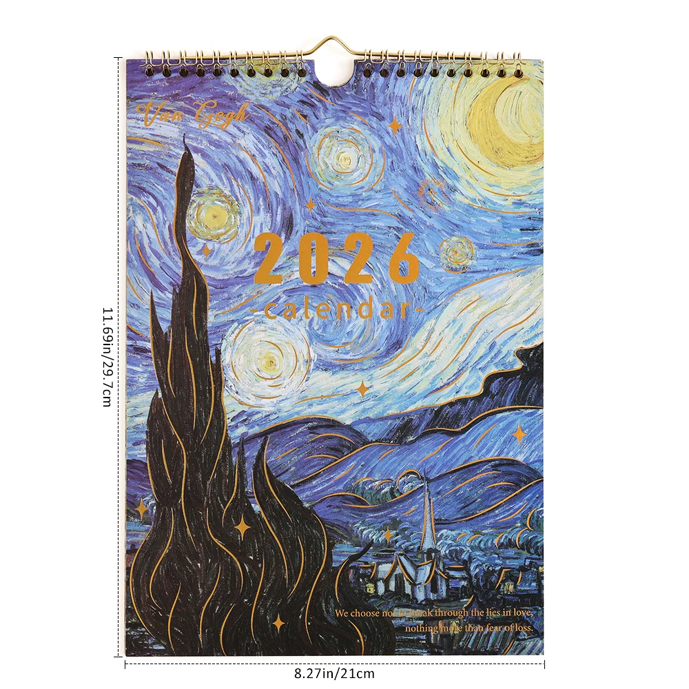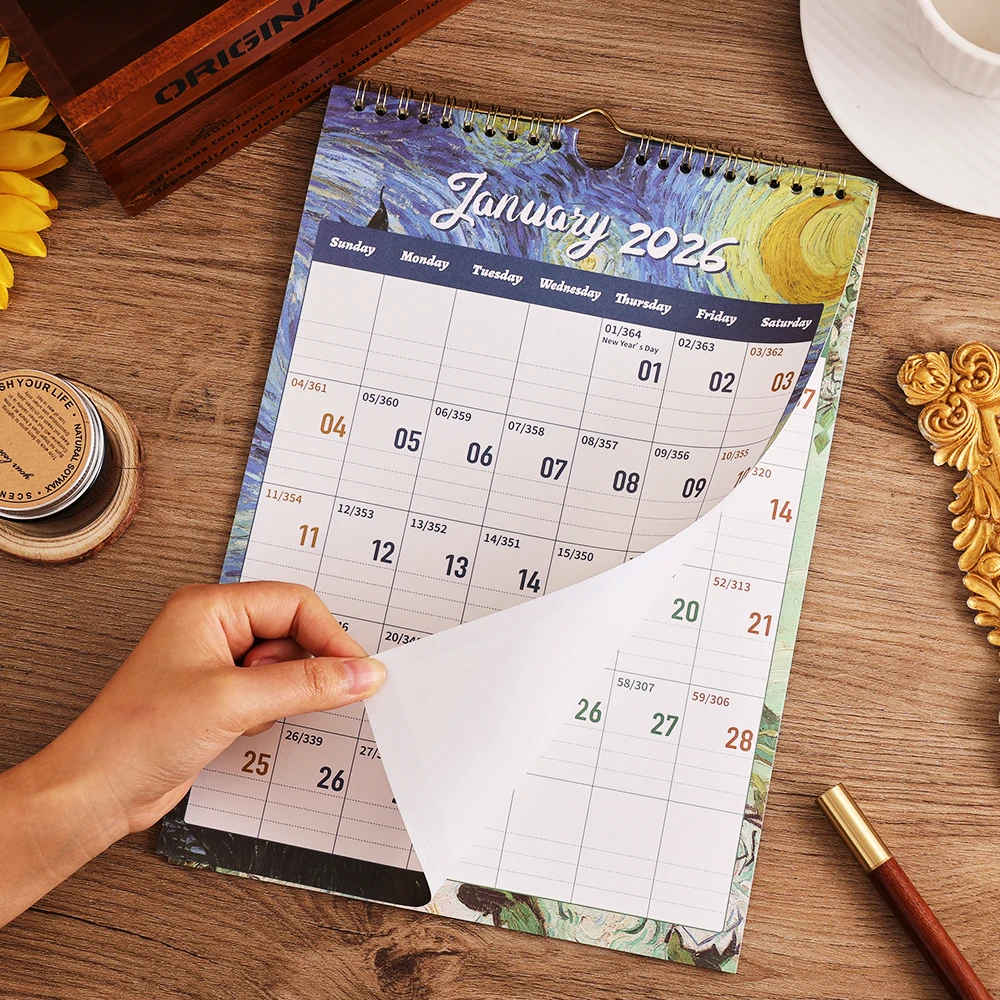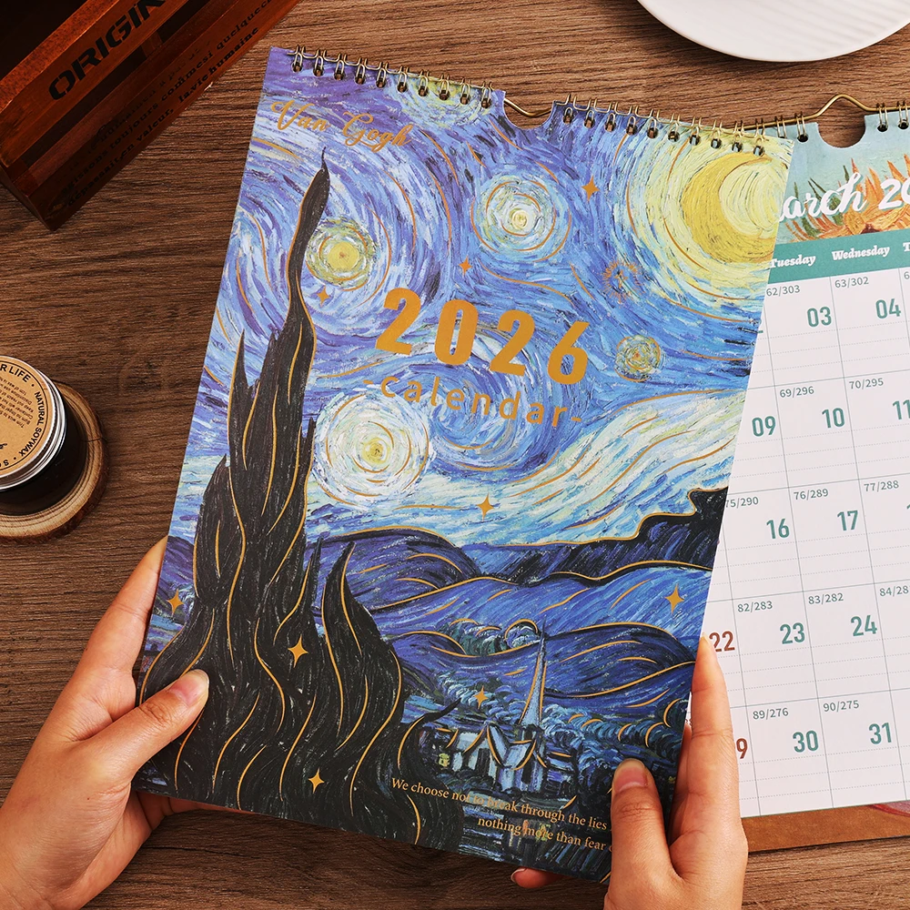 2026 A4 Wall Calendar 12-Month Starry Bronzing Paper Cover Monthly Calendar for Home School Office Organization Supplies